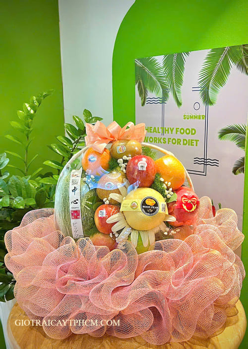 Giỏ trái cây được thiết kế tinh tế, sang trọng, thích hợp sử dụng làm quà tặng trong nhiều dịp như sinh nhật, thăm hỏi sức khỏe, khai trương, tri ân đối tác, lễ Tết hoặc các sự kiện quan trọng.