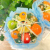 Giỏ gỗ hình lục giác có quai xách, được trang trí sẵn theo tone màu khách hàng yêu cầu, đảm bảo tính thẩm mỹ và sang trọng.